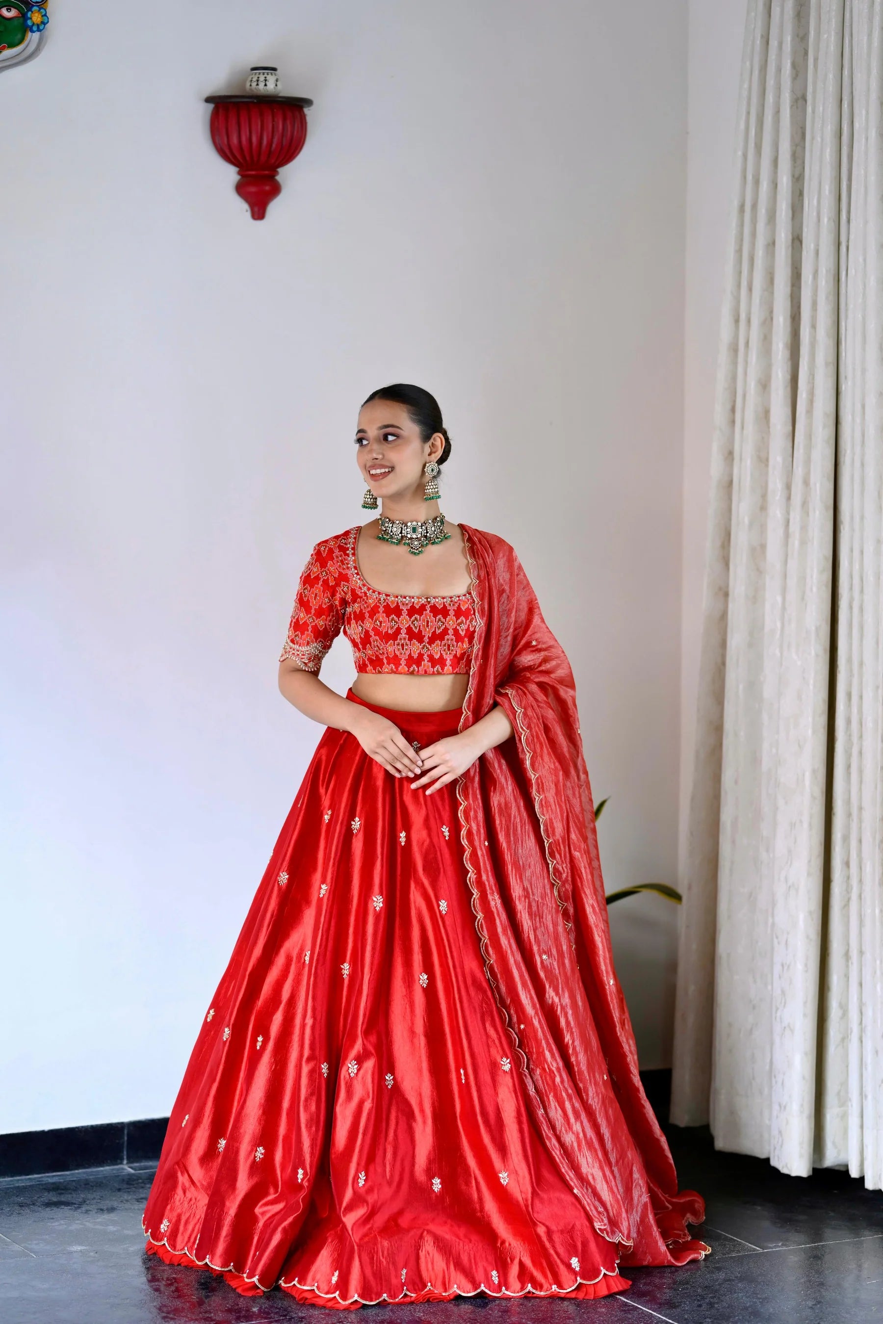Make your bridal journey unforgettable with this Designer Red Silk Lehenga, a stunning ensemble that represents style, tradition, and timeless beauty, ensuring you look every bit the radiant bride on your wedding day.
