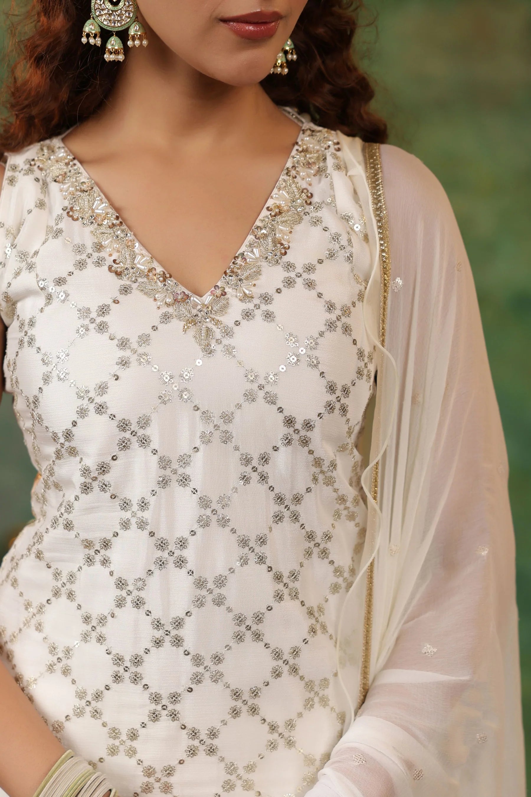Designer Women Paaro Ivory White Garara Set with Dupatta