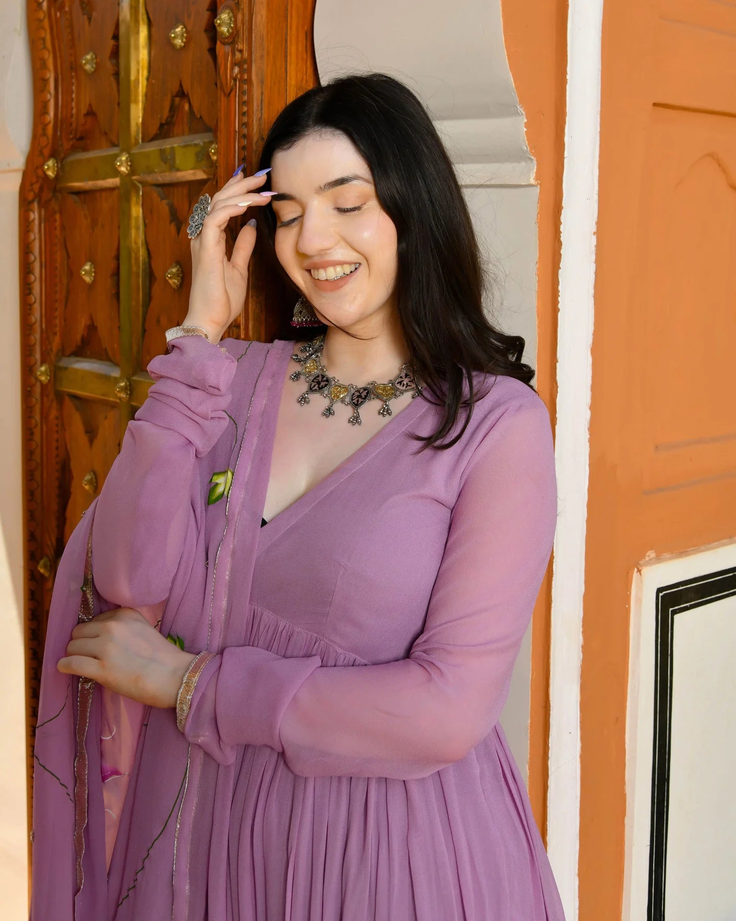Graceful Handpainted Georgette Ethnic Suit Set for Traditional Gatherings and Special Occasions