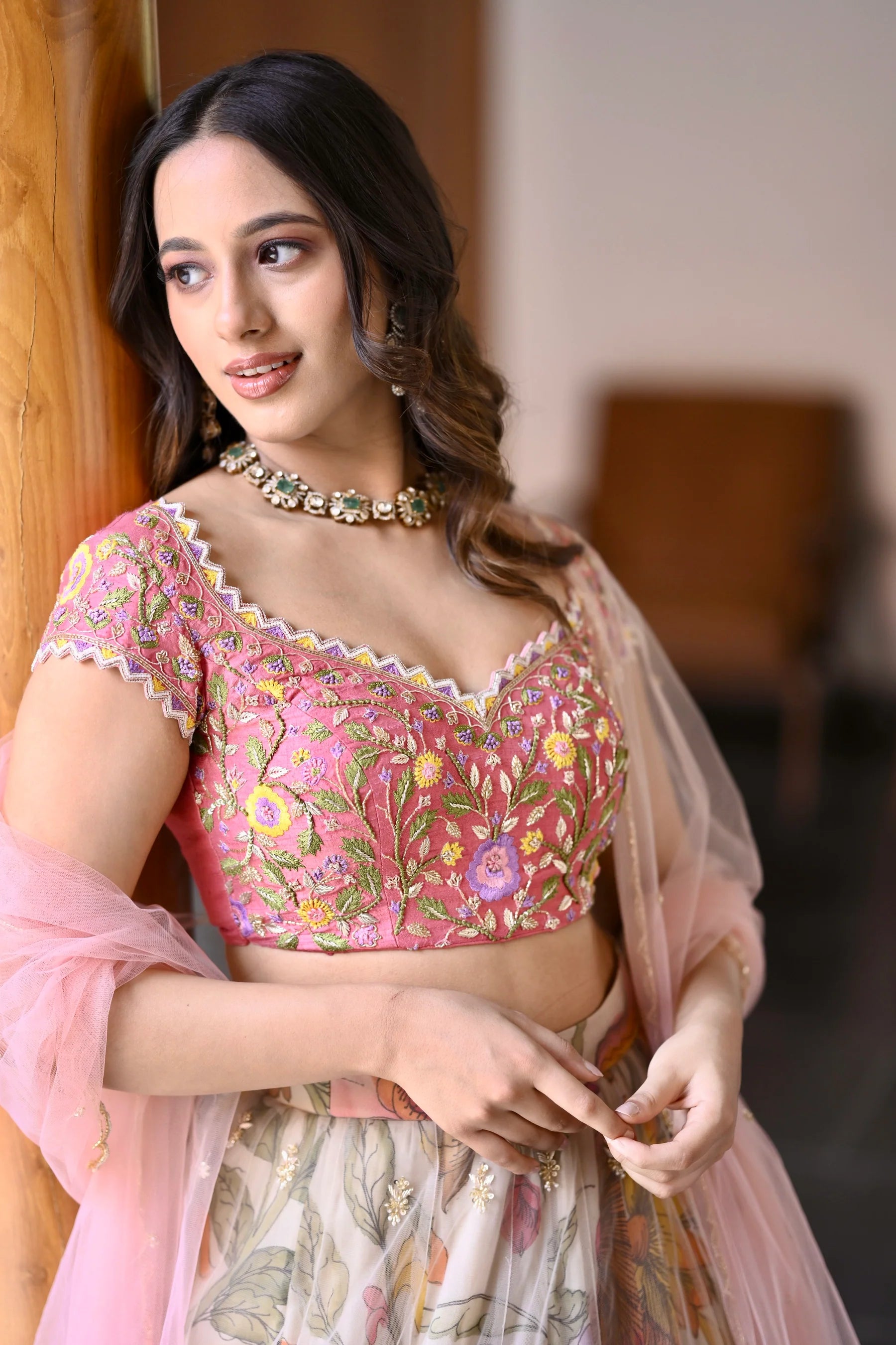Crafted in premium organza silk, the lehenga is lightweight, breathable, and comfortable, ensuring you can carry it with ease during long festivities. The natural movement of the fabric adds grace with every step, making it a versatile choice for women who value comfort without compromising on style.
